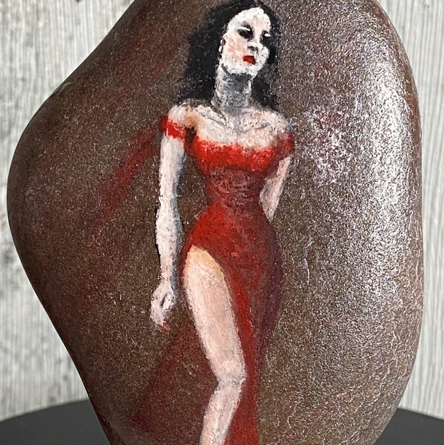 Cette femme marche laissant une jambe nue sortir de la fente échancrée de sa robe rouge